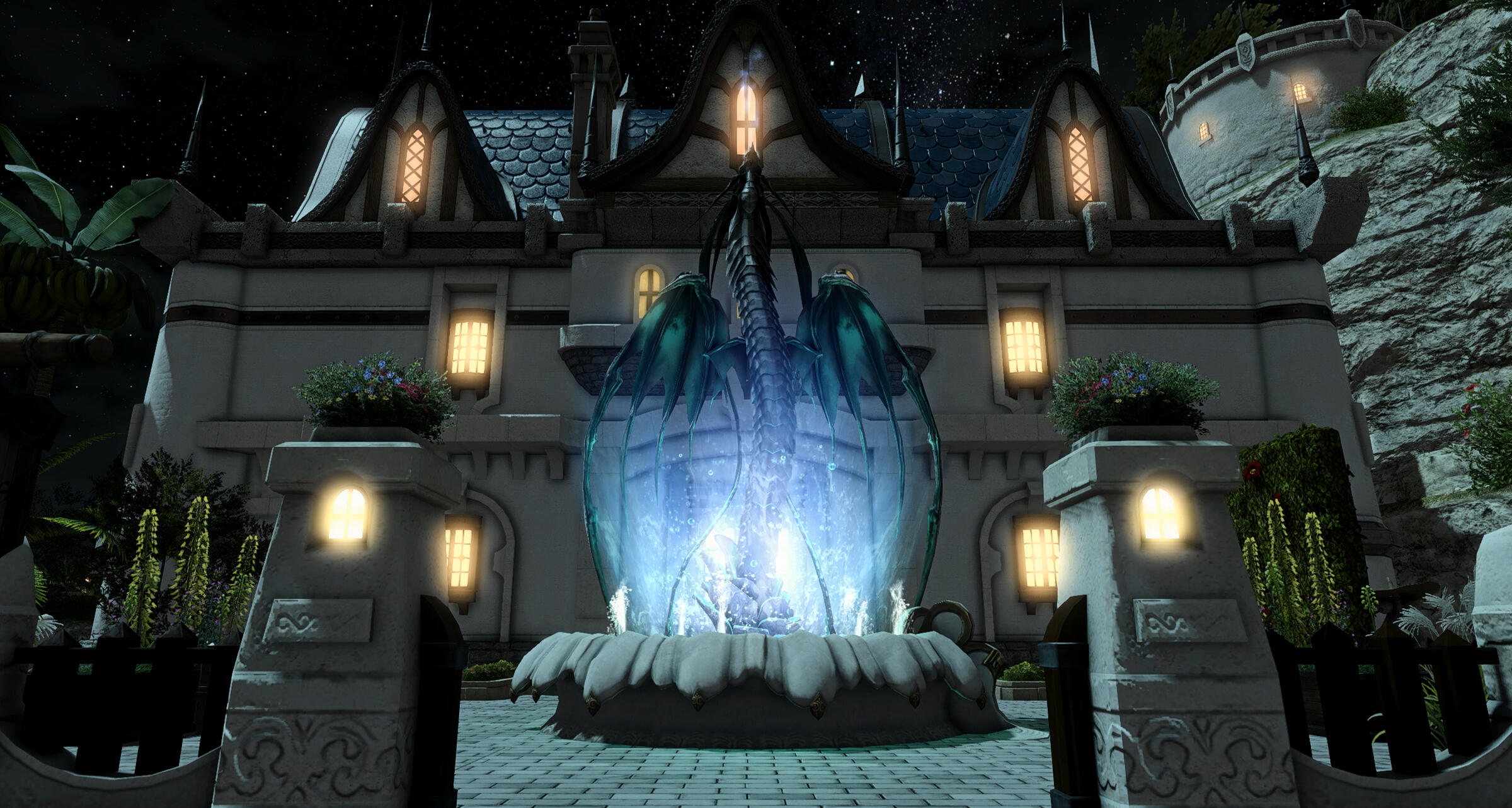 The fountain in front of the Pelagio features the Lord of the Whorl, Leviathan. Although there's an occasional sniff of trouble around using the water primal as a mascot—folks haven't forgotten the crimes of his tempered followers—there is a certain appeal to the primal frozen in the act of leaping from the water.