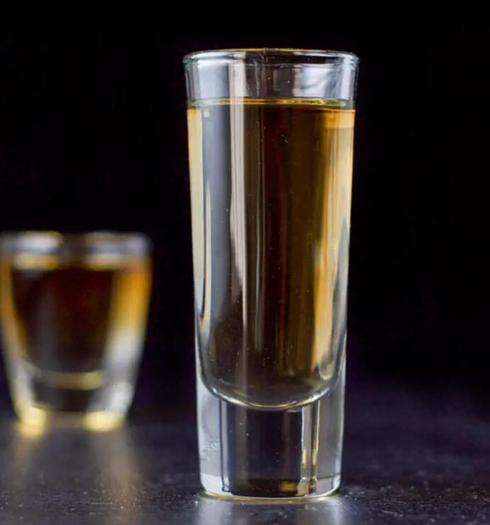 A shot of pre-Calamity gold rum aged in La Noscean oak casks, available as a body shot from staff for a fee. Served with whipped cream, or with spiced honey.