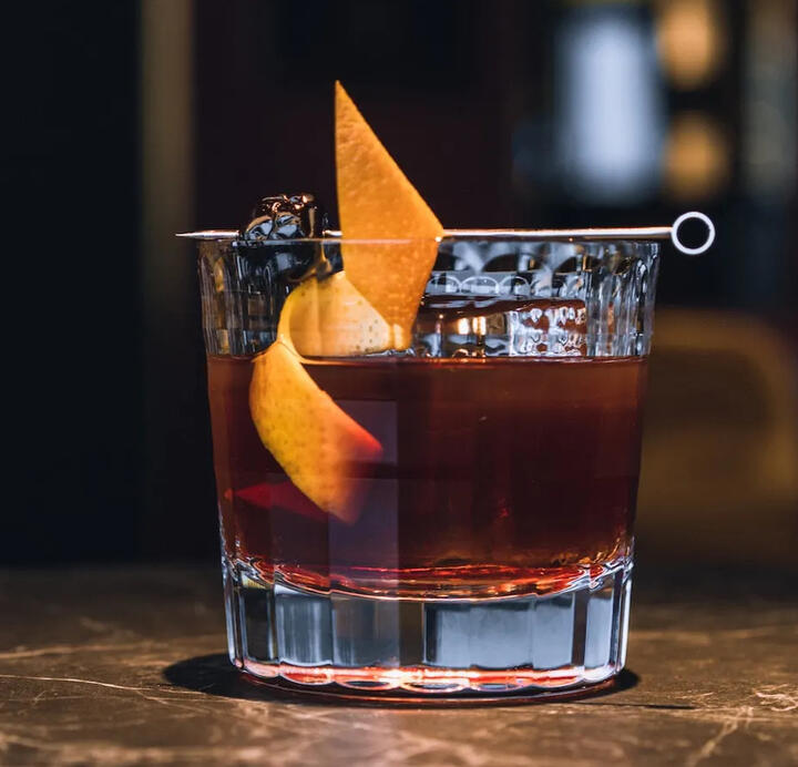 Smoky faerie apple brandy distilled over Rootslake peat and infused with honeysuckle, with a dash of clove bitters and beet sugar, over a single cube of Hathoeva ice.