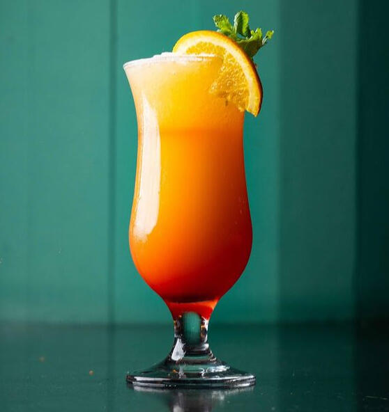 Orange and pineapple juices blended with orange liqueur and grenadine to make a warm sunset gradient. Can be made non-alcoholic.